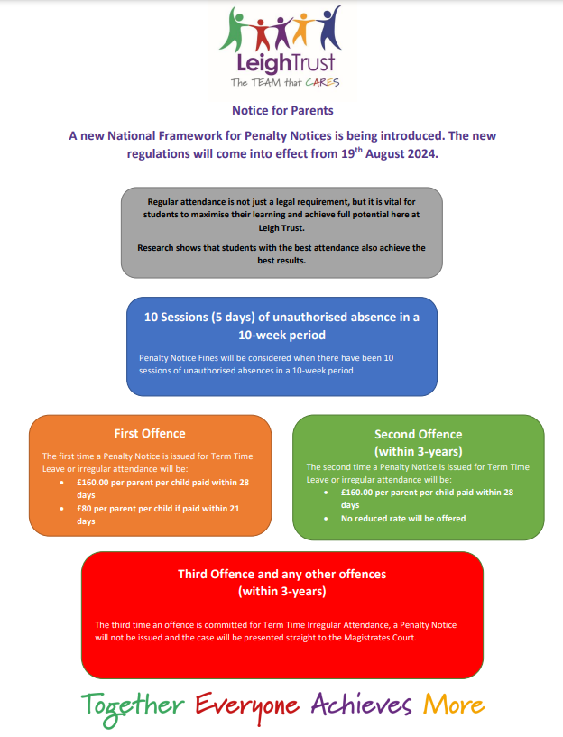 Please note that where parents fail to ensure their child attends school regularly, legal action, including penalty notices, may be considered