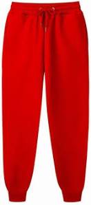 Plain red or black shorts/tracksuit bottoms (no branding)